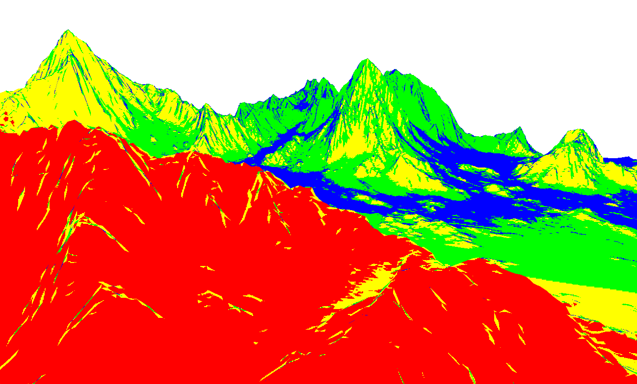 Colors indicate mip level, with red marking the highest resolution and blue the lowest.